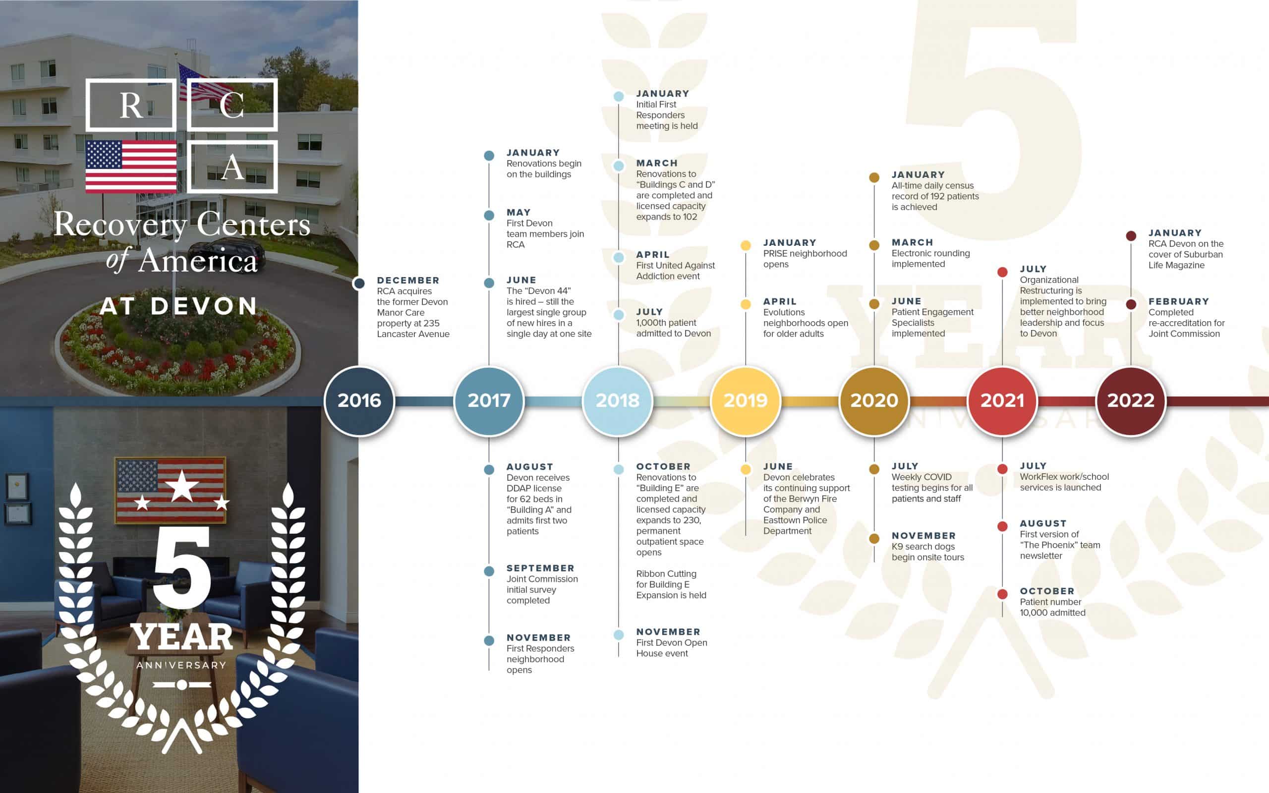 We broke ground, as it were, in December of 2016, with RCA’s acquisition of the former Devon Manor care property at 235 Lancaster Ave. Since then, we at RCA at Devon have been honored—humbled—to have undertaken over 12,000 admissions, helping each individual start their journey to meaningful recovery and build rewarding lives free from the burden of addiction.