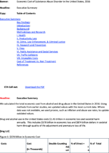Table of ContentsExecutive SummaryKey FindingsIntroductionBackgroundMethodology and ResearchI. HealthII. Productivity LossIII. Crime, Law Enforcement, & Criminal JusticeIV. Research and PreventionV. FiresVI. Public Assistance and Social ServicesVII.…