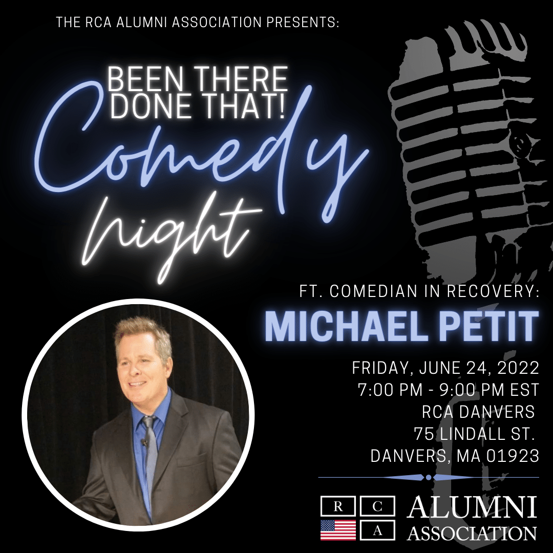 Danvers area alumni: Join us back at RCA Danvers on Friday, June 24 for a night of laughter featuring standup comedian, Michael Petit from 7:00 PM – 9:00 PM.